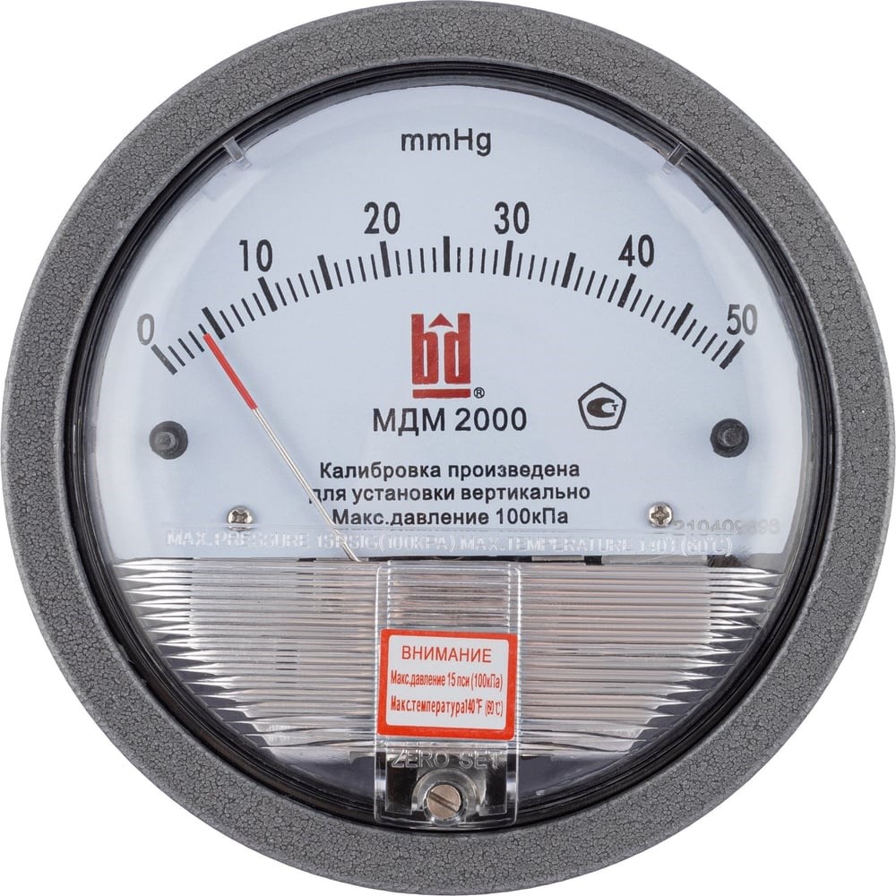 Манометр дифференциальный мембранный (МДМ 2000) является аналогом Magnehelic 2000 с расширенными функциональными возможностями.МДМ 2000 используется для измерения давления, развиваемого вытяжными вентиляторами и вентиляторами обдува, сопротивления фильтров, падений давления на мерных диафрагмах, контроля поплавковых устройств в системах воздушной смазки и давлений в пневматических усилителях или системах, а также для контроля в системах управления соотношением воздушно - газовой смеси автоматических клапанов. Конструкция устойчива к ударам и перегрузкам по давлению.На фармацевтическом производстве в "чистых" помещениях используется в качестве индикатора, показывающего необходимую разницу давлений в соседних помещениях.