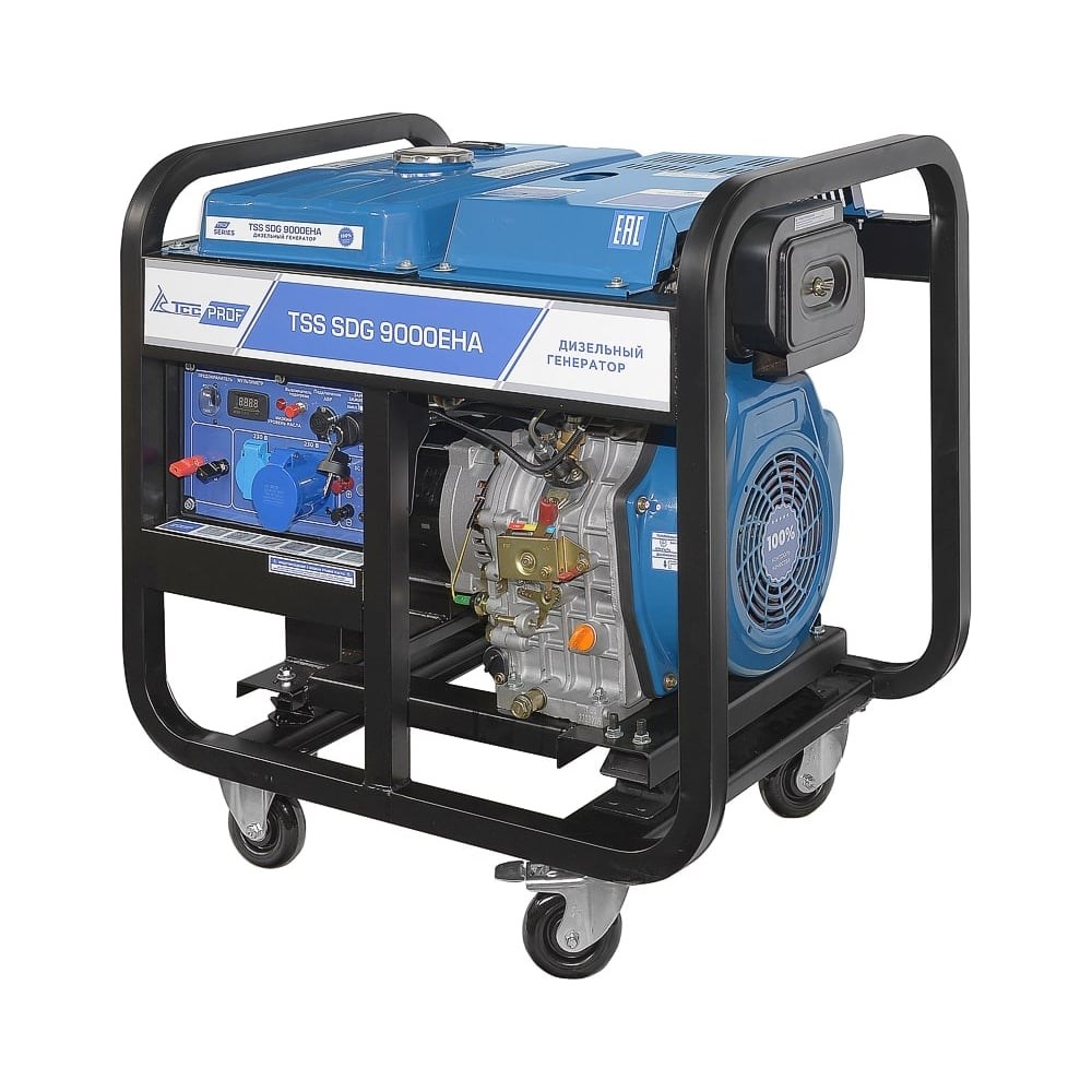 Дизель генератор ТСС SDG 9000EHA 100035 с максимальной мощностью 8,5 кВт не только отлично справится с созданием резервного электропитания в случаях отключения электроэнергии, но и гарантирует стабильную работу в качестве главного источника питания. Применяется в качестве независимого источника электроэнергии в частном доме или на даче, на объектах малого строительства и уличной торговли, при подключении бытовых приборов и инструмента. Особенности конструкции: Электронное зажигание не требует дополнительных настроек, что упрощает обслуживание двигателя в течение всего срока службы Интеллектуальный модуль с многофункциональным дисплеем предлагает эффективный способ контроля параметров работы (на дисплее отображаются часы работы(моточасы) дизельного генератора, напряжение, частота тока) Электронные регуляторы напряжения обеспечивают высокий уровень стабильности выходного напряжения и устойчивость к перегрузкам. Автоматический выключатель для защиты от перегрузок и короткого замыкания Встроенный датчик уровня топлива позволяет осуществлять визуальный контроль остатка топлива в баке. При понижении давления масла ниже допустимого уровня на панели управления загорается сигнальная лампа; Топливный бак увеличенного объема обеспечивает автономную работу агрегата в течение 6 часов, с учетом обеспечения режима охлаждения В дизельных генераторах ГК ТСС установлен предпусковой подогрев, который делает возможным сам запуск системы в сложных условиях, при температуре от 0 до -15 ℃.