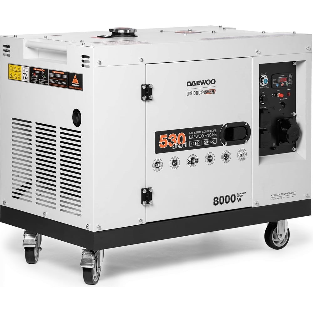 Дизельный генератор с возможностью подключения ATS Daewoo DDAE 10000SE имеет в своей конструкции мощный 4-х тактный дизельный двигатель с моторесурсом более 2000 часов. Система SuperSilent подавляет шум, который производит агрегат во время работы, до 66 дБ. Многочисленные отверстия в корпусе модели защищают устройство от перегрева. Модуль управления имеет встроенный микропроцессор, который позволяет контролировать встроенные функции. Стабильность работы, а также возможность экономии топлива до 15 % достигается за счет наличия топливного насоса высокого давления и форсунки особой формы. Цифровой дисплей отображает параметры тока и напряжения, а также количество отработанных часов. Металлический топливный бак объемом 15 литров оснащается системой индикации уровня топлива и имеет автоматический кран. Запуск двигателя после длительного простоя не составит труда благодаря автоматической системе удаления воздушных пробок. Датчик уровня масла способствует долгому сроку службы и дает возможность избежать снижения моторесурса. Необходима замена масла не реже 1 раза в 50 часов работы.