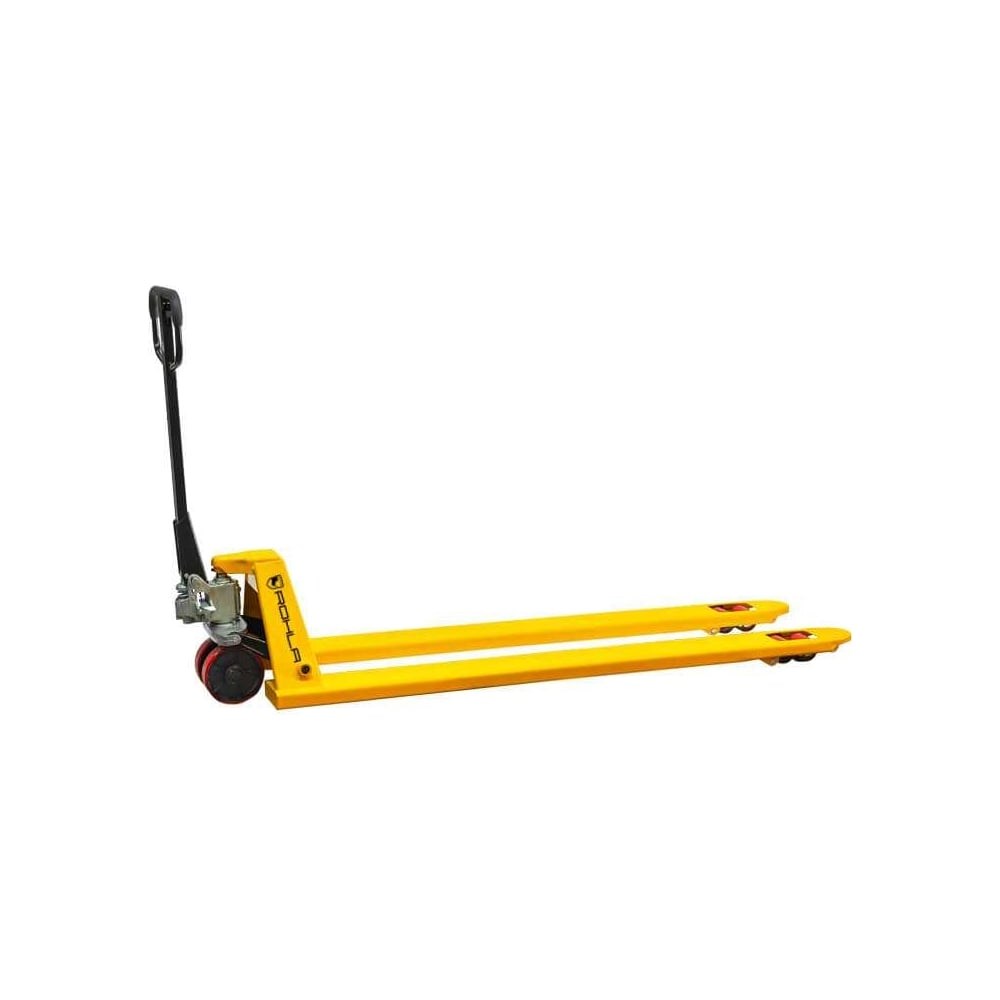 Длинновильная гидравлическая тележка RohlaRhino длина вил 2000 мм, грузоподъемность 2,5 т RRSD2025L идеально подходит для работы с крупногабаритными и длинномерными грузами.Имеет литой разборный гидроузел, обрезиненную рукоятку c усиленным основанием, регулируемые тяги на вилах. Комплектуется вспомогательными подвилочными роликами.Ведущие колеса диаметром 180 мм и сдвоенные опорные ролики облегчают передвижение тележки с тяжелыми грузами и обеспечивают плавность хода и легкость поворотов.