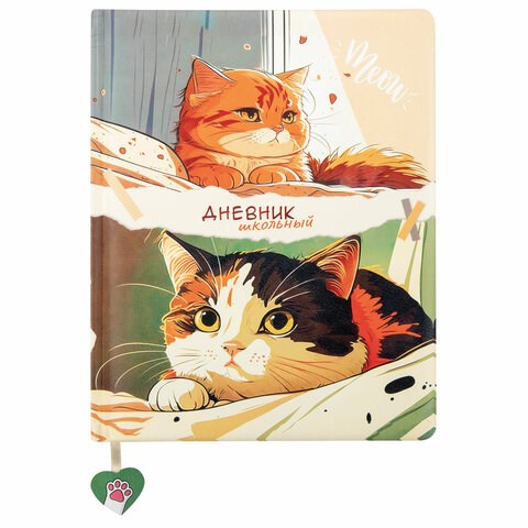 Дневник 1-11 класс 48 л., кожзам (твердая с поролоном), печать, ляссе с аппликацией, BRAUBERG, "Котики", 106958