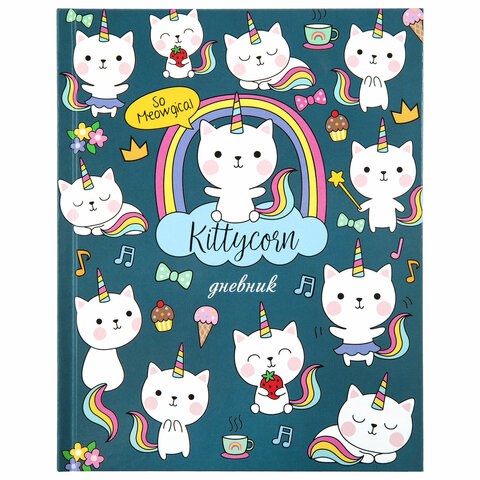 Дневник 1-4 класс 48 л., твердый, ЮНЛАНДИЯ, глянцевая ламинация, с подсказом, "Kittycorn", 106346