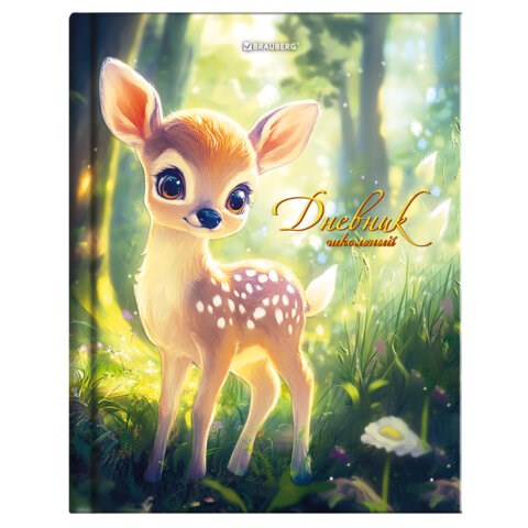Дневник 1-4 класс 48 л., твердый, BRAUBERG, выборочный лак, с подсказом, "Оленёнок", 107595