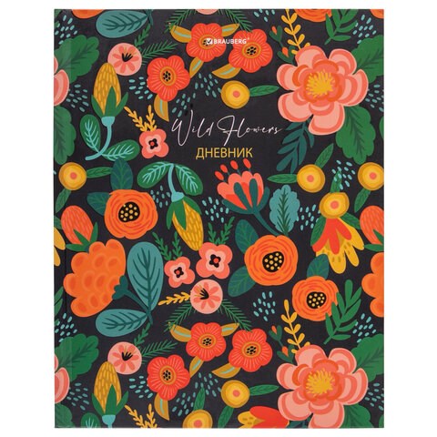 Дневник 5-11 класс 48 л., твердый, BRAUBERG, выборочный лак, с подсказом, "Цветы", 106410