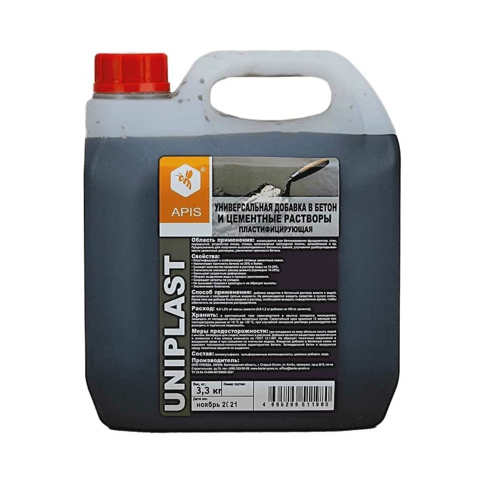 Добавка в бетонные и цементные растворы APIS СУПЕРПЛАСТИФИКАТОР UNIPLAST