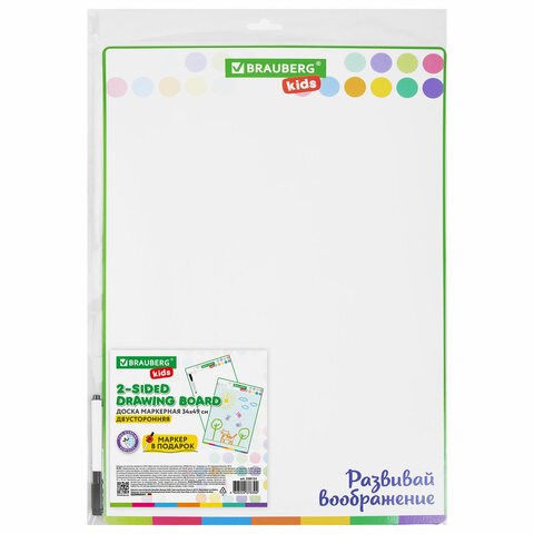 Доска для рисования, с маркером, двухсторонняя, в клетку/белая, 34х49 см (А3), BRAUBERG KIDS, 238153
