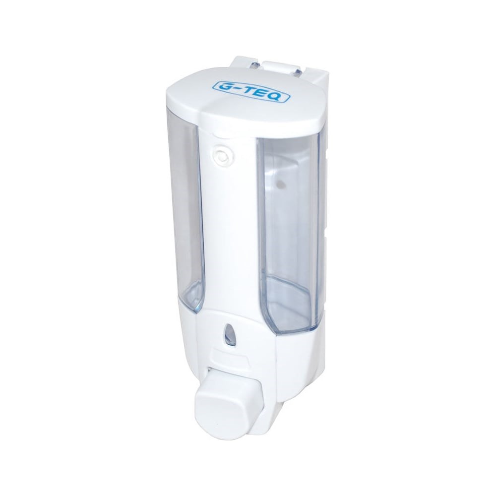 Дозатор для жидкого мыла G-teq белый 8617 работает от нажатия и выдает порцию жидкого мыла 1,5 мл. Устройство имеет смотровое окно и пластиковый замок, который закрывается на специальный ключ.