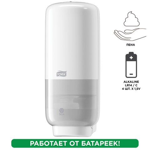 Дозатор для жидкого мыла-пены СЕНСОРНЫЙ TORK (Система S4) Elevation, 1 л, белый, 561600