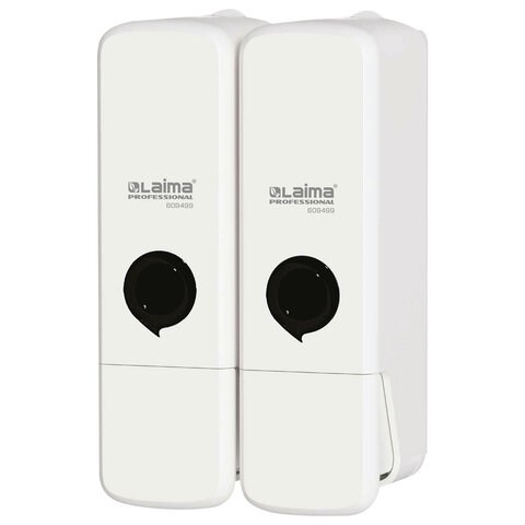 Дозатор двойной 2 х 0,3 л для жидкого мыла/шампуня/геля LAIMA PREMIUM, НАЛИВНОЙ, белый, ABS-пластик, 609499