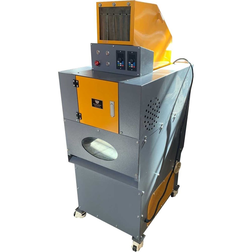 Дробилка-сепаратор мощностью 3 кВт, производительностью 30-50 кг/ч позволяет автоматизировать труд по переработке кабеля. Предназначена для переработки коротких медных проводов, медных проводов без оболочки, мягких медных проводов. Устройство представляет собой камеру, в которую загружается кабель и измельчается подвижными и статичными ножами. Дробильный станок считается достаточно экологичным оборудованием.Масса, кг: 330Мощность, кВт: 4,5Напряжение, В/Гц: 380/50Производительность, кг/ч: 30-50Габаритные размеры, м: 0,8х0,6х1,6Калибр ячейки, мм: 2,5, 3,5, 4,5