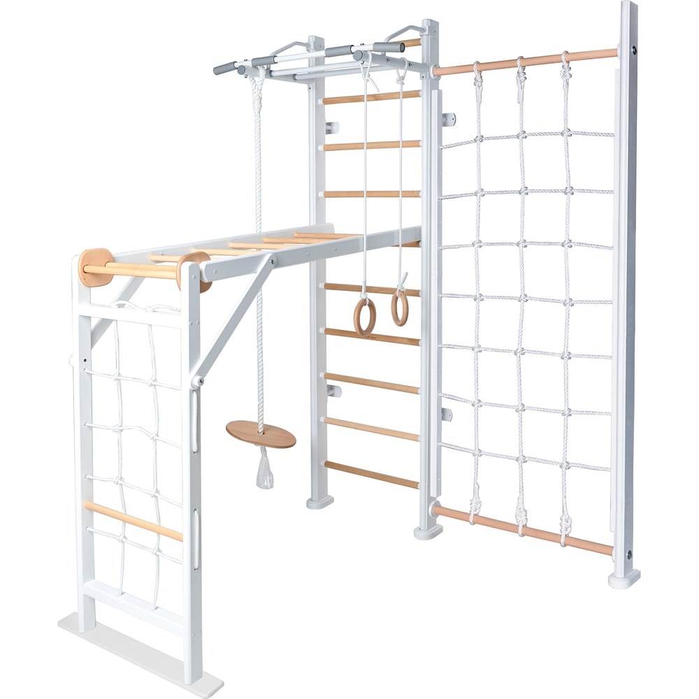 ДСК Perfetto sport Scala in legno con rete 2 bianco-naturale PS-131 СГ000005353 укомплектован полезными элементами для развития ребенка. Комплекс выдерживает нагрузку 100 кг, для навесного оборудования - 50 кг, прост в сборке и установке. На нём можно выполнять большое количество упражнений, направленных на большинство групп мышц, создавая идеальный уровень нагрузки для ребенка. Изюминкой комплекса является приставной рукоход, который легко снимается и складывается. Этот элемент можно поставить на пол отдельно.