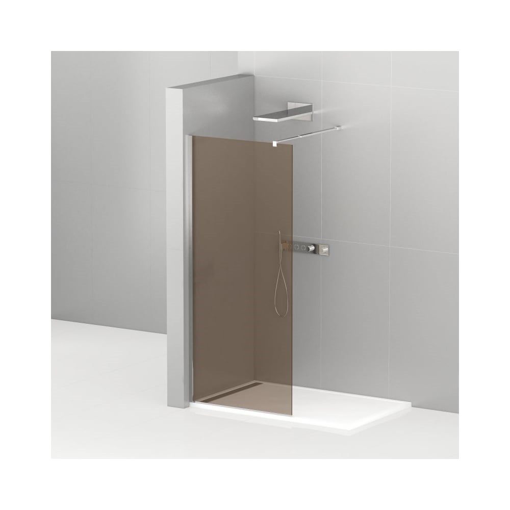 Душевые перегородки серии Libarta от итальянского производителя Cezares-идеальное и современное решение для организации душевой зоны в ванной комнате. Душевые перегородки Liberta изготовлены из восьми миллиметрового, закаленного, безопасного стекла. У конструкции практически отсутствует профиль, что делает душевую перегородку более воздушной и элегантной. Стекла в серии Liberta производятся в трёх вариантах расцветок: прозрачные, бронзированные и тонированные. Профиля и фурнитура имеют два варианта исполнения: хром и черный матовый. За счет телескопического кронштейна изделие можно регулировать по ширине, что позволят настроить перегородку на нужные параметры. Изделие можно устанавливать как на душевой поддон так и на плитку. Душевая перегородка LIBERTA-L-1-100-BR-Cr выполнена из бронзированного стекла с хромированным профилем. Изделие имеет вход с одной стороны. В комплект поставки входит только перегородка. Душевой поддон приобретается отдельно. ОБРАТИТЕ ВНИМАНИЕ! При установке душевой перегородки непосредственно на пол использование нижнего водоотводного профиля необходимо, т.к. установка открытого торца стекла на плитку настоятельно не рекомендуется и ведёт к прекращению гарантийных обязательств