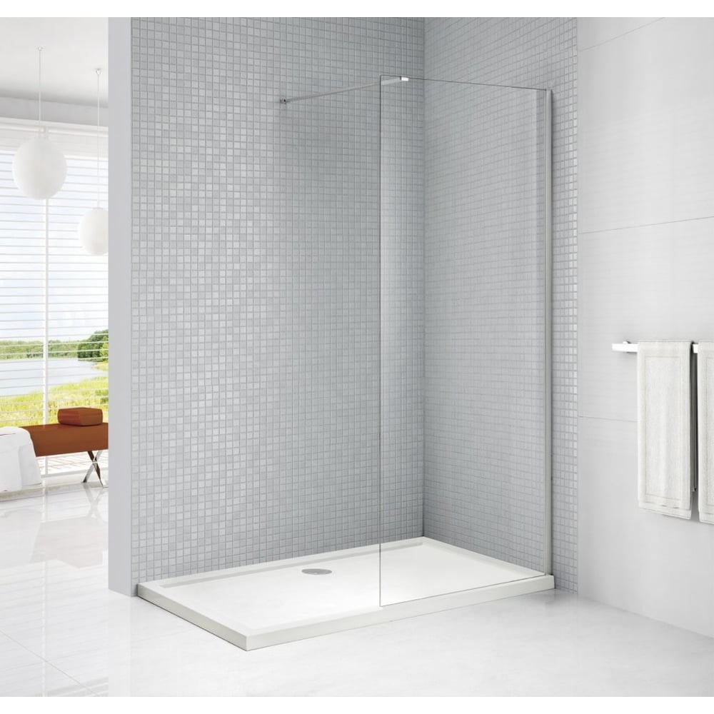 Душевые перегородки серии Libarta от итальянского производителя Cezares-идеальное и современное решение для организации душевой зоны в ванной комнате. Душевые перегородки Liberta изготовлены из восьми миллиметрового, закаленного, безопасного стекла. У конструкции практически отсутствует профиль, что делает душевую перегородку более воздушной и элегантной. Стекла в серии Liberta производятся в трёх вариантах расцветок: прозрачные, бронзированные и тонированные. Профиля и фурнитура имеют два варианта исполнения: хром и черный матовый. За счет телескопического кронштейна изделие можно регулировать по ширине, что позволят настроить перегородку на нужные параметры. Изделие можно устанавливать как на душевой поддон так и на плитку. Душевая перегородка LIBERTA-L-1-115-C-Cr выполнена из прозрачного стекла с хромированным профилем. Изделие имеет вход с одной стороны. В комплект поставки входит только перегородка Liberta. Душевой поддон приобретается отдельно. ОБРАТИТЕ ВНИМАНИЕ! При установке душевой перегородки непосредственно на пол использование нижнего водоотводного профиля необходимо, т.к. установка открытого торца стекла на плитку настоятельно не рекомендуется и ведёт к прекращению гарантийных обязательств