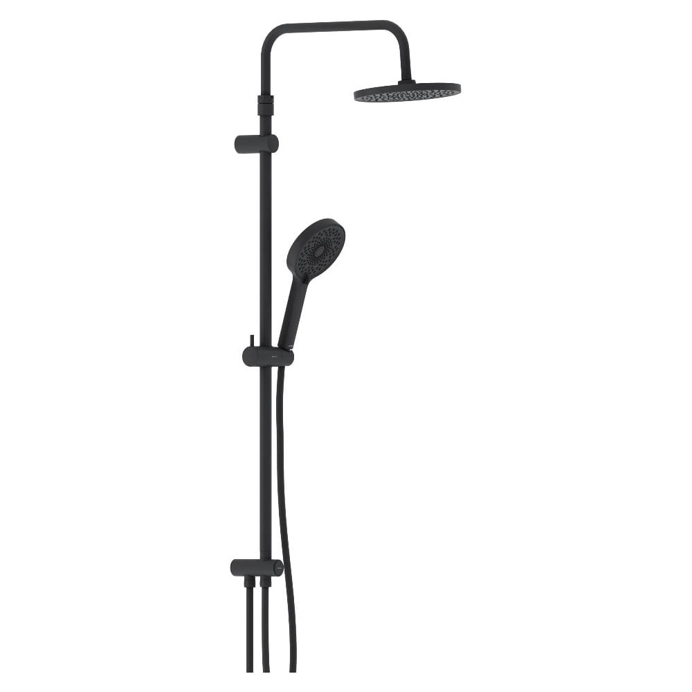 Ультра черная душевая система из коллекции Apollo станет центром притяжения ванной комнаты.Плавные линии в сочетании с массивными формами создают исключительную коллаборацию стиля. Увеличенные душевые лейки и 3 режима ручного душа позволят полностью насладиться душевыми процедурами - взбодриться утром и расслабится вечером. Верхний душ диаметром 235 мм, ручной душ диаметром 125мм. Благодаря телескопической штанге с диапазоном регулировки в 400 мм водные процедуры будут одинаково комфортны абсолютно для всех членов семьи. Глубокий матовый цвет дополнен покрытием High Gloss, которое уберегает поверхность душевой системы от мелких повреждений. Наши инженеры рассчитали оптимальное расстояние между форсунками для распределения напора воды равномерно по всей лейке.Поддерживать чистоту стало еще проще благодаря функции очистки резиновых форсунок Rub&Clean.