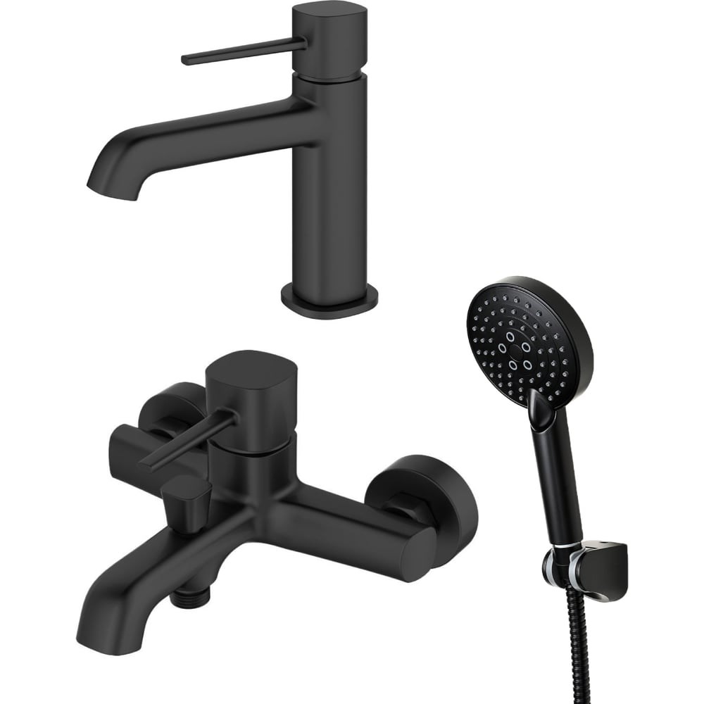 Набор смесителей для ванной комнаты Karl от немецкой компании Orange – отличный выбор для интерьера в стиле минимализм.Латунное изделие устойчиво к коррозии и высоким температурам, а черное матовое покрытие делает незаметными разводы и высохшие капли. Керамический картридж обеспечивает долговечность изделия, стабильную подачу воды и мощный напор. Излив оснащен пластиковым аэратором, он создает ровную мощную струю и легко очищается от известкового налета.В комплекте душевой набор: душевая лейка d 110 мм (3 режима струи, защита от известкового налета RUB CLEAN, с системой AIR IN), шланг в металлической оплетке 1500 мм с защитой от перекручивания, настенный держатель лейки с регулировкой угла наклона.