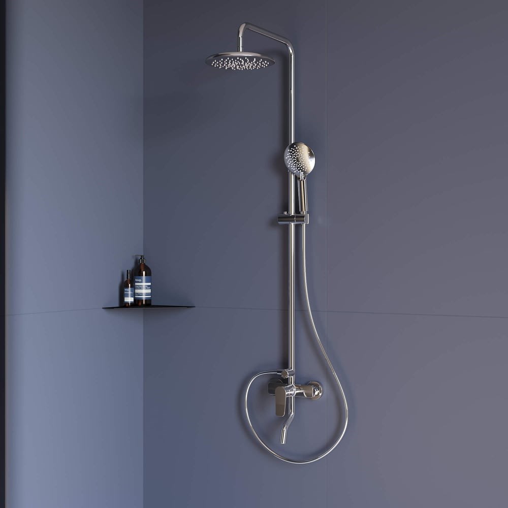 Головной душ из высокопрочного ABS-пластика оснащён со шарнирным креплением, что позволяет выбрать необходимый угол направления воды; SP-25, стальной шланг ручного душа, длина 1.5 м; Ручной душ - 3 режима работы, выполнен из высокопрочного ABS-пластика; Держатель ручного душа с регулировкой высоты; Стальная штанга с регулировкой высоты головного душа Удлинённый излив Смеситель с керамическим картриджем и дивертором для переключение режимов, выполнении из сантехнической латуни Быстрый настенный монтаж