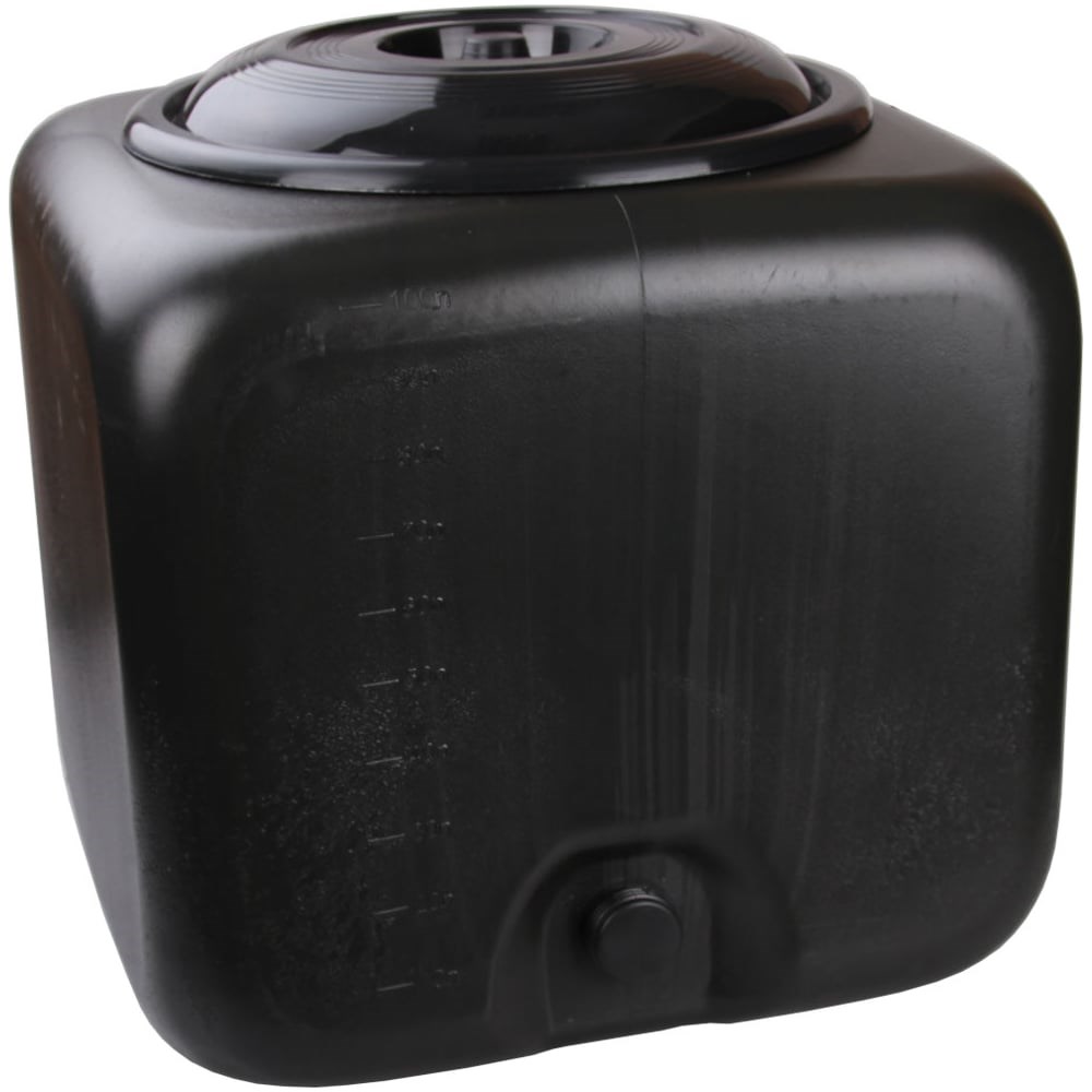 Бак выполнен из качественных полимеров, устойчив к солнечным лучам, влаге и перепадам температур. Благодаря большой горловине в него удобно наливать воду, также сбоку расположено место для слива на которое можно самостоятельно установить кран М1706. На стенке изделия есть специальная шкала для определения уровня воды.