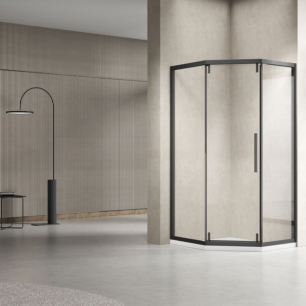Душевой уголок VINCEA show 1000x1000, черный, стекло прозрачное VSP1-4SH100CLB