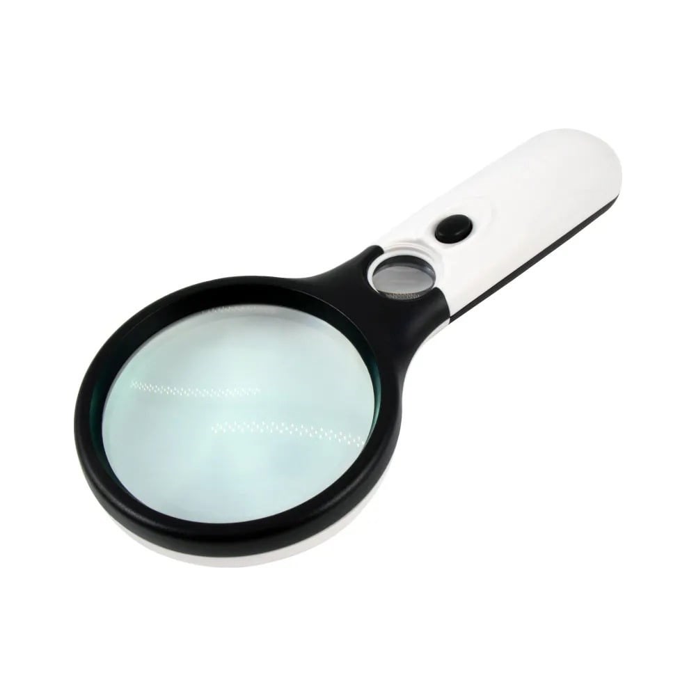 Лупа двойная с подсветкой "Следопыт" имеет удобный размер для фиксации в руке. Идеально подходит для увеличения мелких деталей и текста. Подсветка позволит увидеть все детали даже в условиях низкой освещенности. Незаменима при чтении описания товара на упаковке или ценнике. При ярком солнечном свете может применяться для розжига костра. Для протирки линз рекомендуется использовать оптические салфетки для очков.
