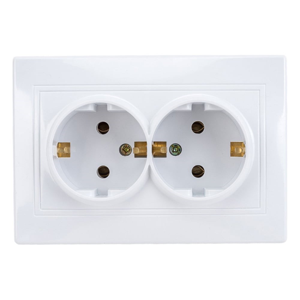 Двойная розетка Intro Plano с заземлением 2x2P+E Schuko, 16А-250В, IP20, СУ, белый Б0053915