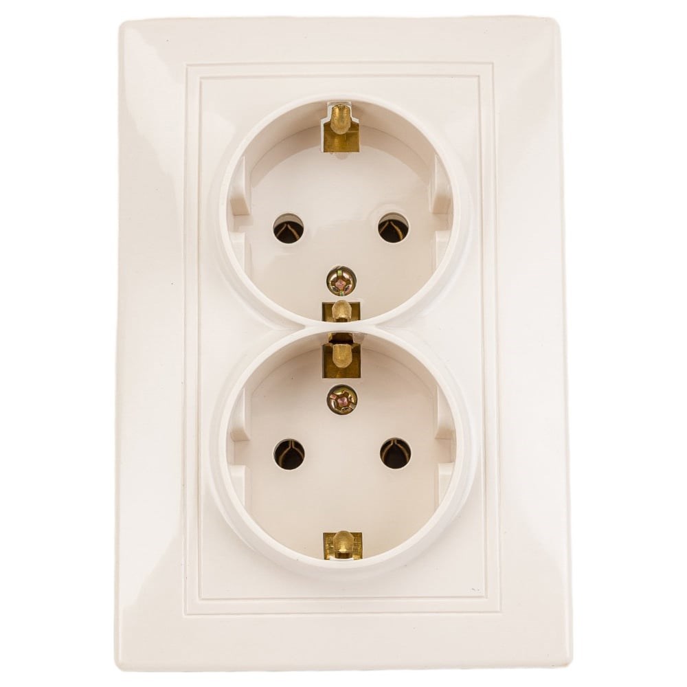 Двойная розетка Intro Plano с заземлением 2x2P+E Schuko, 16А-250В, IP20, СУ, слоновая кость, Б0053916