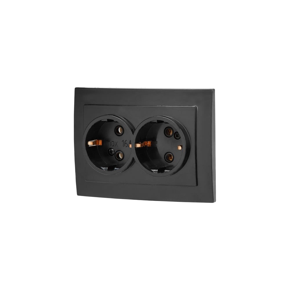 Двойная скрытая розетка ЮПИТЕР с заземлением Стандарт черная JP7423-03