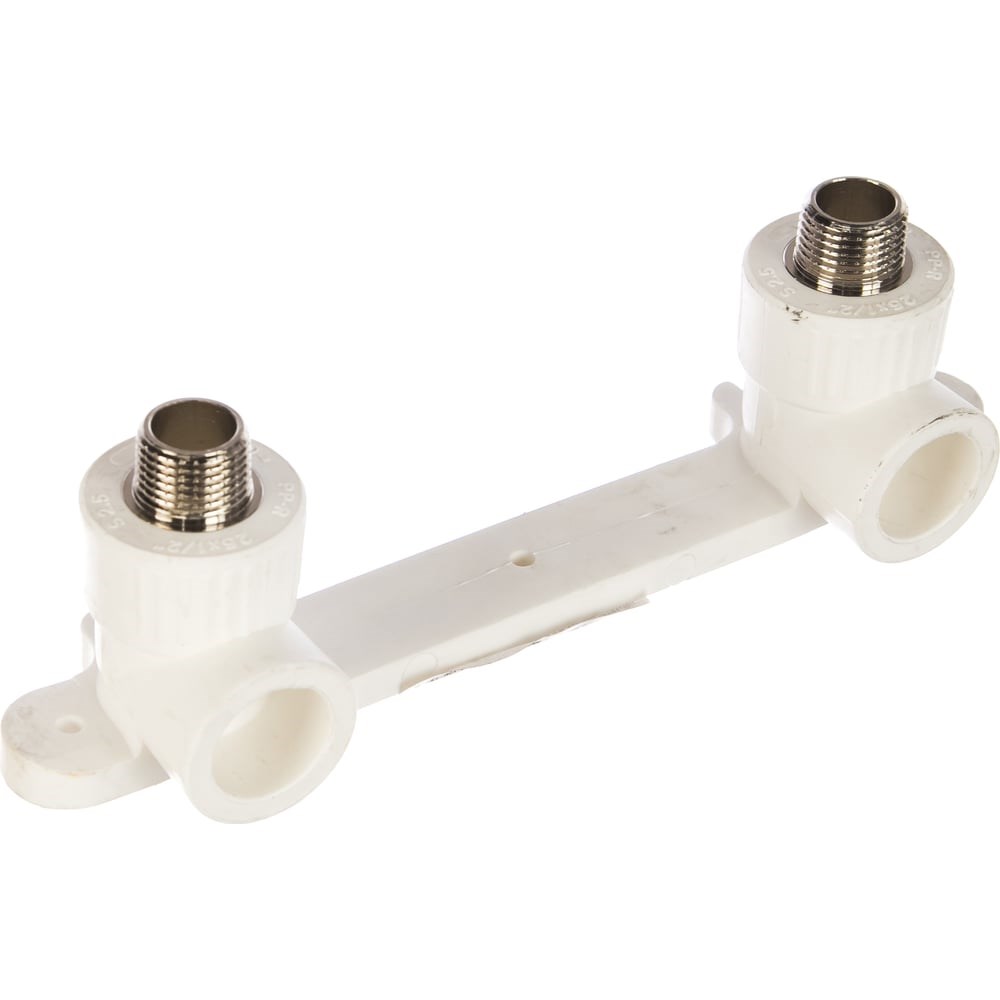 Комбинированный двойной угольник с креплением PRO AQUA PP-R НР белый, 25 мм, 1/2" PA280112Pb используют при организации сетей водоснабжения, в том числе питьевого. Допускается применение в системах низкотемпературного и высокотемпературного отопления. Фитинги из ППР PRO AQUA характеризуются повышенной стойкостью к высоким температурам. Благодаря абсолютной стойкости к компонентам воздуха, воде, различным органическим и неорганическим растворам, включая растворы кислот, солям фитинги не коррозируют на протяжении всего срока службы в отличие от стальных аналогов. Благодаря существенно меньшей, чем у металлов жесткости PP-R величина гидравлического удара в системе в разы ниже, чем при использовании изделий из стали, меди или иных металлов. Закладной элемент выполняется из сантехнической марки латуни CW617N.