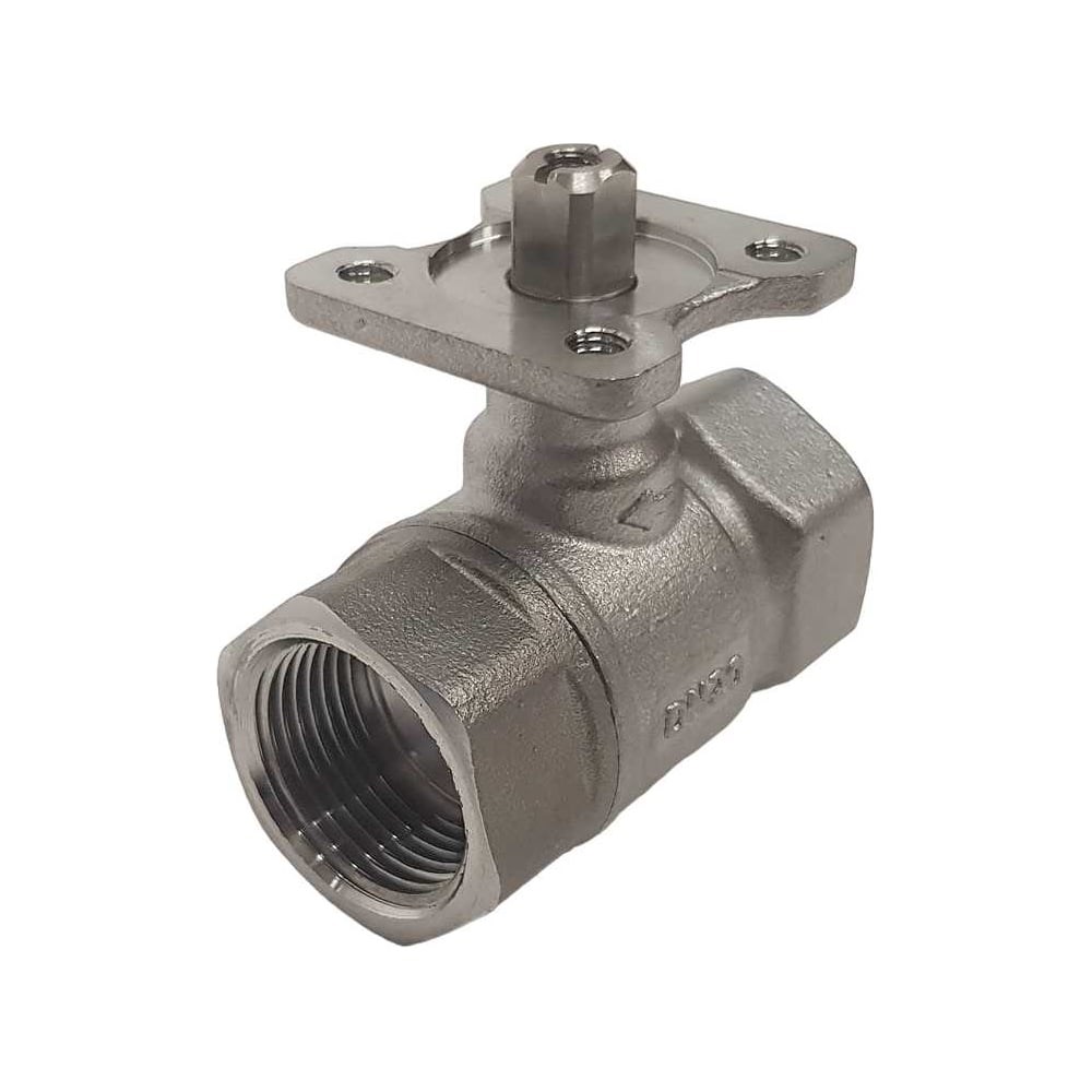 Двухходовой шаровой кран TECHNO 2020A из нержавеющей стали, под привод DN20, G3/4, КVS 4 660220-1 предназначен для систем горячего и холодного водоснабжения и водных растворов. Кран отличается надежностью, долгим сроком службы и высокой герметизацией. Эти параметры достигаются благодаря литому корпусу из латуни с применением фторопластовых уплотнений (PTFE), двум уплотнительным кольцам из этиленпропиленового каучука (EPDM). Шар и вал изготовлены из нержавеющей стали. Дополнительные характеристики: Пропускная способность KVS 4 м3/ч Корректировочный диск Максимальное давление PN25 (~Ру25, 2,5Мпа, 25Bar, 25атм) Перепад давления до PN3,5 Запорное давление до PN13 Рабочая среда: вода, содержание гликоля не более 50%,пар низкого давления Температура рабочей среды от -5°C до 95°C Мощность привода с кронштейном - 2 Нм Кронштейн-переходник под привод и привод приобретаются отдельно.