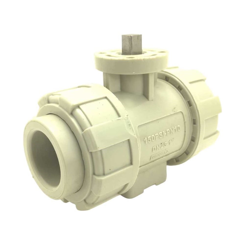 Шаровые краны TECHNO имеют отличную надежность, долгий срок службы и высокую герметизацию благодаря литому корпусу из полипропилена с применением фторопластовых уплотнений (PTFE), двум уплотнительным кольцам из этиленпропиленового каучука (EPDM) для стержня крана. Максимальное давление PN10 (~Ру10, 1Мпа, 10Bar, 150PSI) Рабочая среда: вода, пар, масло, кислоты Температура рабочей среды от -10°C до 60°C Площадка под привод F03 по ISO5211 шток 9х9 мм Кронштейн-переходник под привод и сам привод приобретаются отдельно.