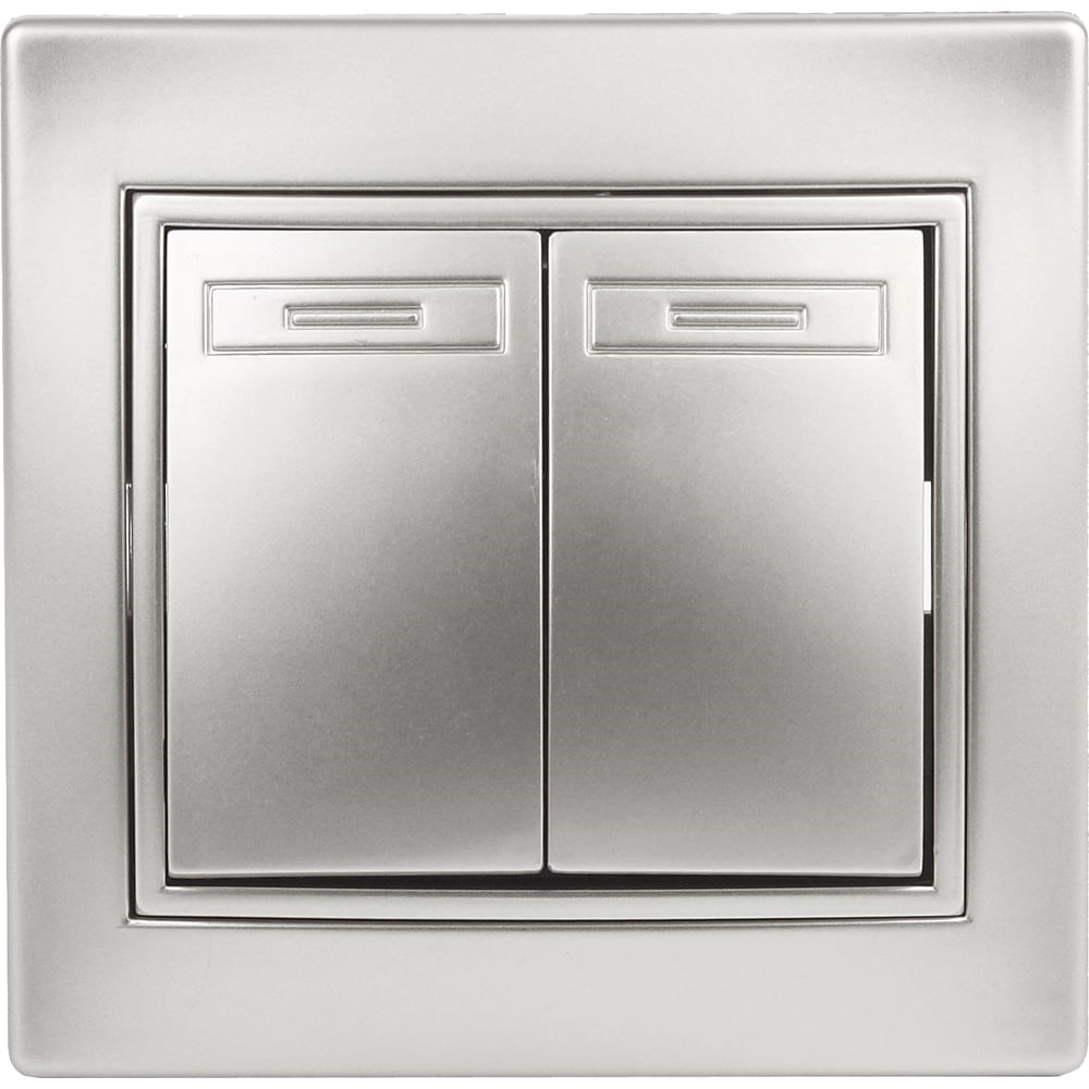 Выключатель Intro Plano 1-104-03 двухклавишный, 10А-250В, IP20, СУ, Plano, алюминий, Б0053762