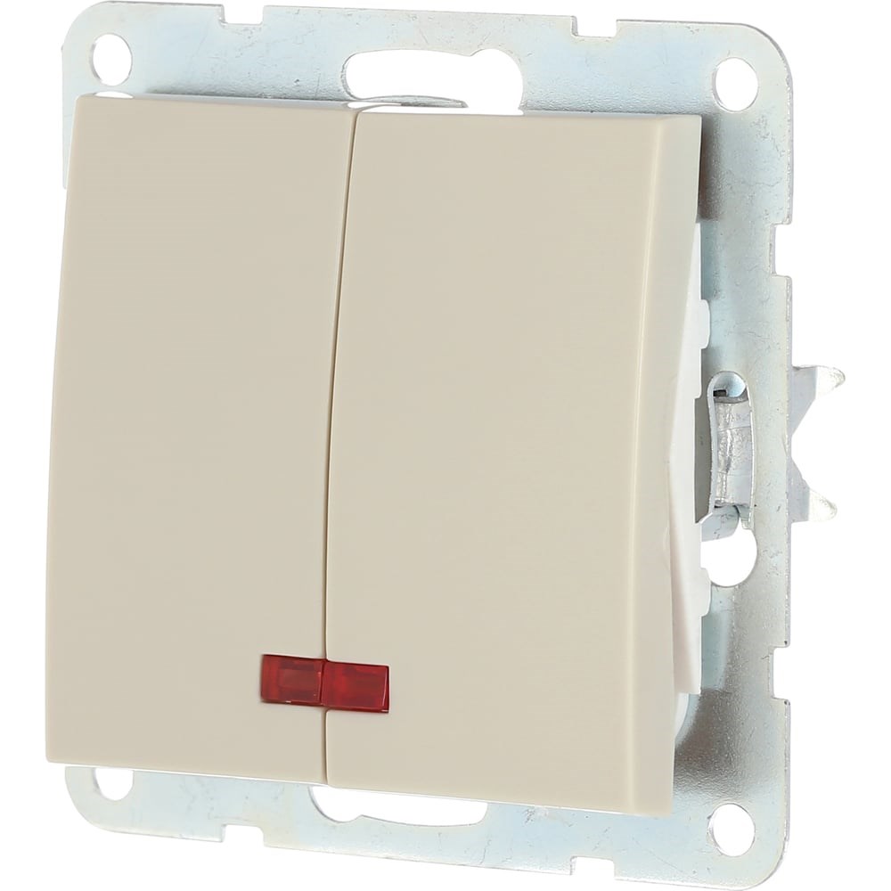 Выключатель двухклавишный однополюсный с общим вводом для двух цепей с индикацией, схема 5.К данному изделию подходят пластиковые рамки LK Studio, Серия LK60 в цвете “бежевый”:864101-1 - Рамка 1-постовая (бежевый) LK60 864201-1 - Рамка 2-постовая (бежевый) LK60 864301-1 - Рамка 3-постовая (бежевый) LK60 864401-1 - Рамка 4-постовая (бежевый) LK60 864501-1 - Рамка 5-постовая (бежевый) LK60 869101-1 - Рамка универсальная защитная с крышкой для выключателей и розеток (бежевый) LK60