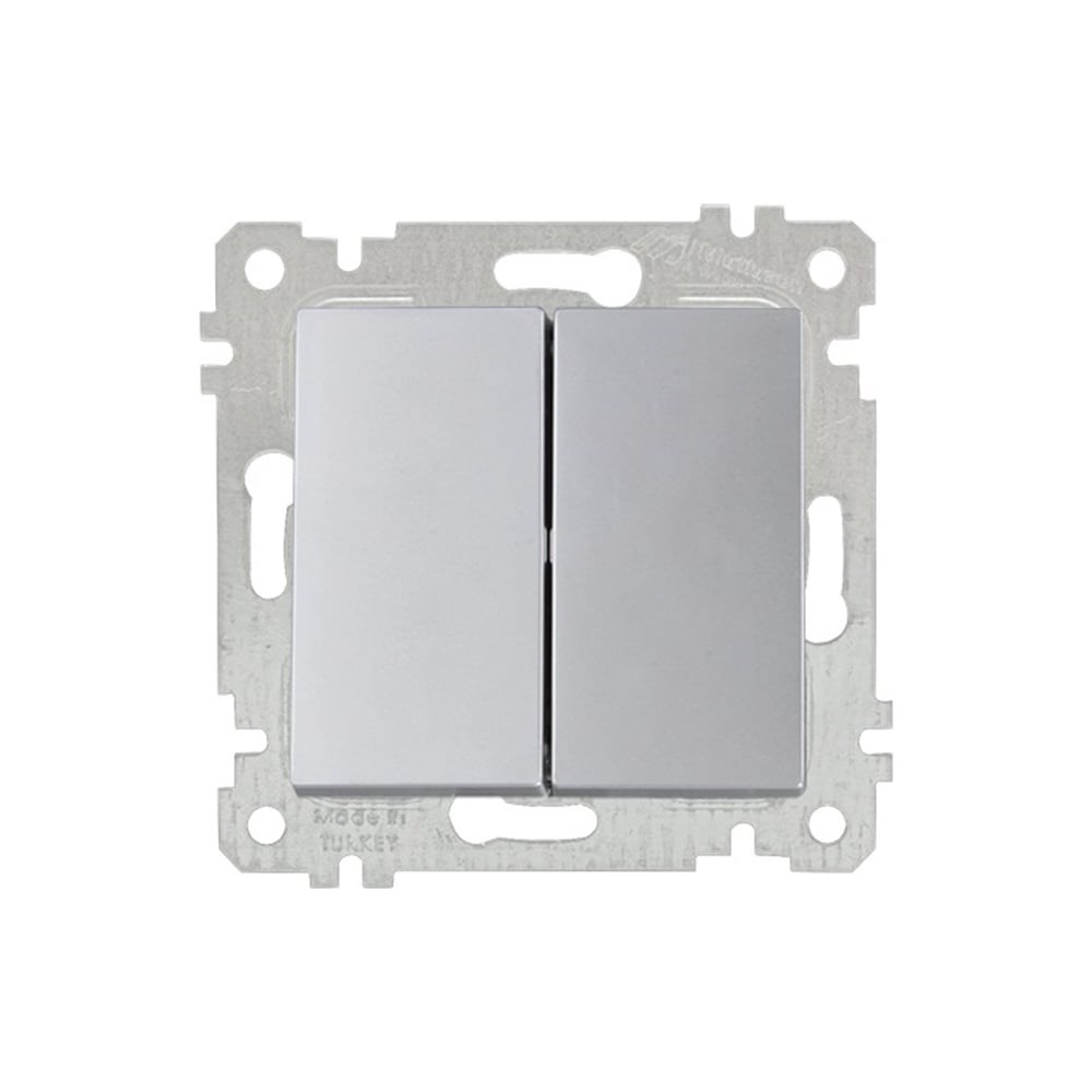 Двухклавишный выключатель Mutlusan Rita (коммутатор), цвет серебро (с винтом ) 2200 402 0282предназначен для бытового использования в стандартных электрических сетях переменного тока и частотой 50 Гц.