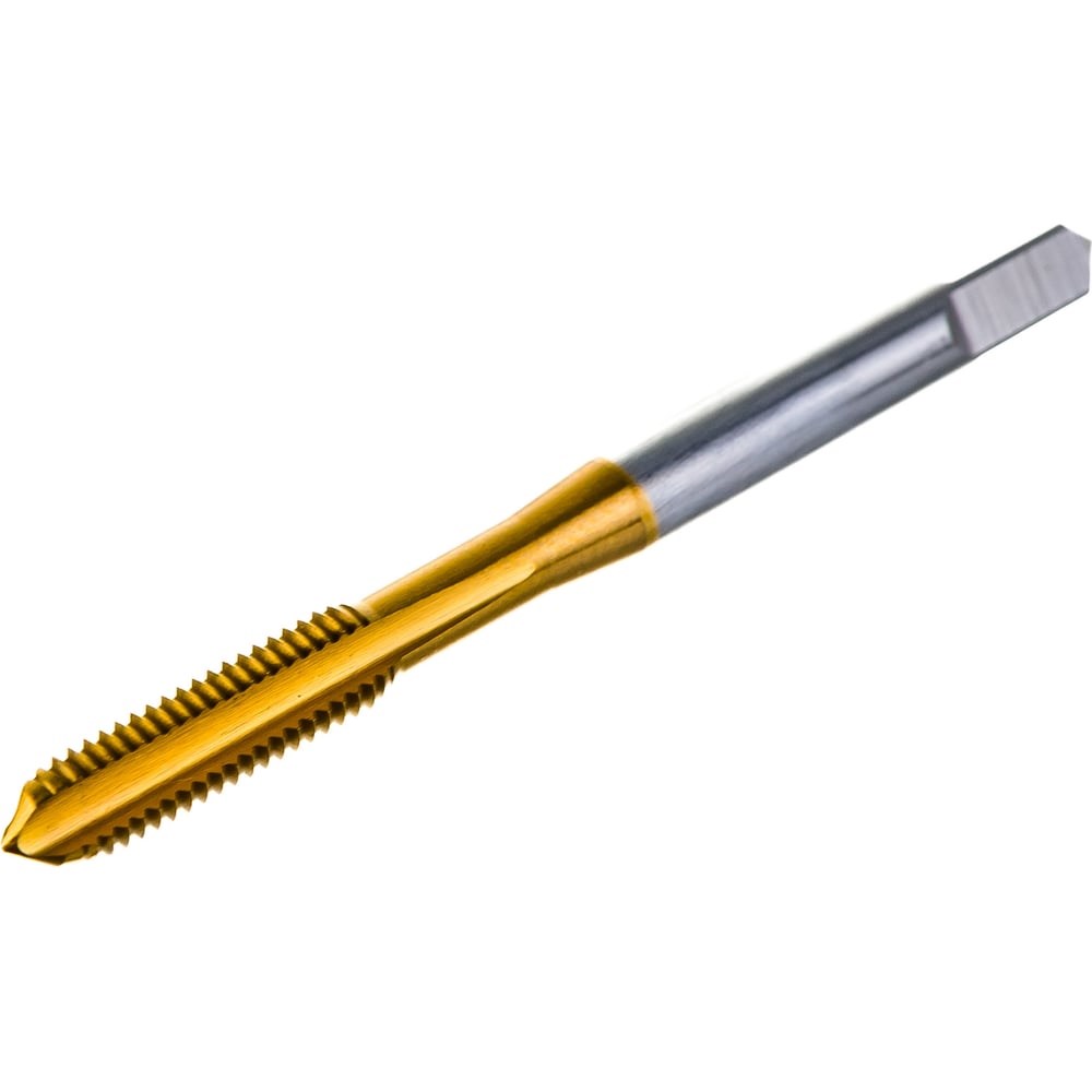 Метчик комплектный (I/II) двухпроходный машинно-ручной, прямая канавка №142 размеры М5*0,8 материал метчика HSS M2 TIN, ТМ ПрофОснастка. Общая длина метчика 58 мм, длина режущей части 16 мм, диаметр хвостовика 5 мм, посадочный квадрат 4 мм. Метчик выполнен по ISO 529 (аналог ГОСТ 3266-81), правый, точность 6H, предназначен для нарезания резьбы в сквозных и глухих отверстиях. Прямая канавка обеспечивает легкий отвод стружки при обязательном использовании СОЖ. Ресурс использования на любых металлах многократно увеличивается при использовании СОЖ. Покрытие нитрида титана увеличивает поверхностную твердость и износостойкость, а также обеспечивает повышенный ресурс. Также благодаря покрытию метчик может ограниченно использоваться на нержавеющих сталях (пониженная скорость вращения и обязательное применение СОЖ). Метчик Эксперт ТМ ПрофОснастка HSS M2 TIN имеет один наиболее выгодный показатель стоимости нарезания резьбы на рынке для промышленного применения.