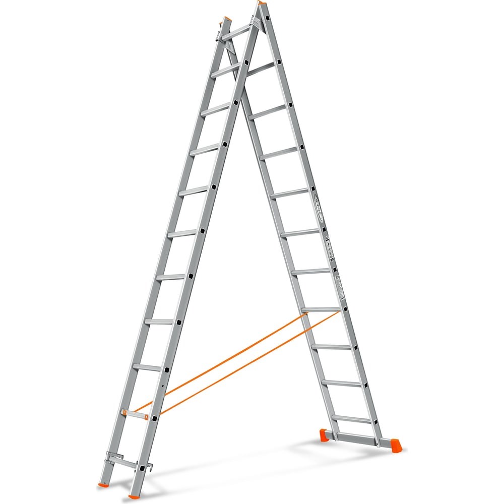 Двухсекционная лестница Эйфель Гранит 2х11 - надежное оборудование, имеющее две равные секции, соединенные специальными замками. Ступени "Ребро Эйфеля" обеспечивают безопасное восхождение. Модель может применяться для ремонтных и строительных работ. Её можно приставлять к вертикальной поверхности. Рабочая высота - 6.18 м. Алюминиевая лестница характеризуется высокой прочностью.