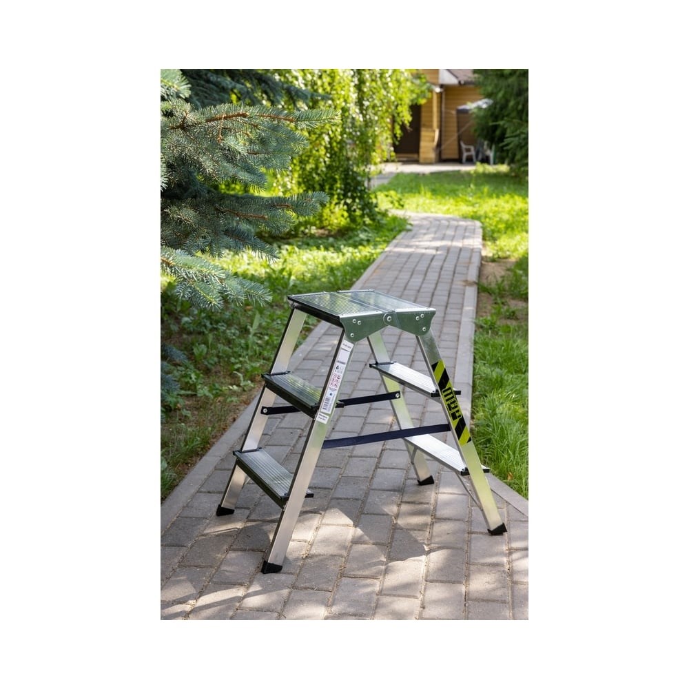 Двухсторонняя мини-платформа НАШ 3 ступени 18388390 - необходимая вещь для дома. С помощью стремянки можно легко достать из шкафа нужную вещь, повесить шторы, покрасить стену и сделать еще множество домашних дел. Производится из качественного алюминиевого профиля. Имеет широкие рифленые ступени для удобства подъема. Ширина ступеней - 10 см.