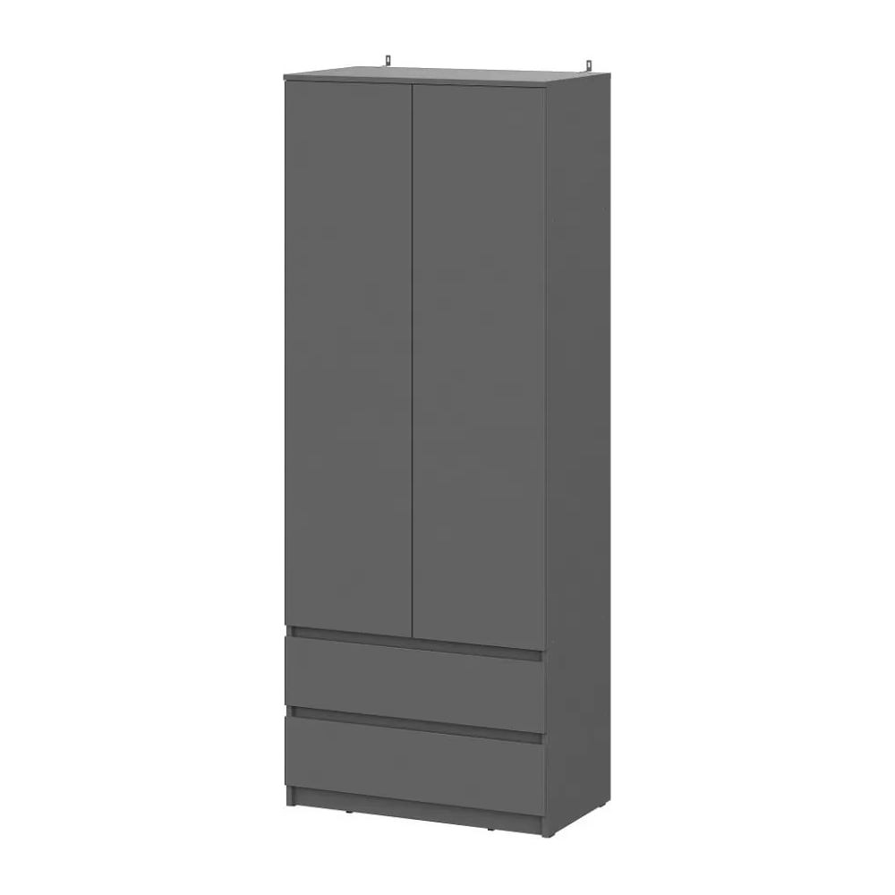 Шкаф Денвер с распашными дверьми и двумя ящиками в цвете графит - это идеальный выбор для тех, кто ищет стильную и функциональную мебель для своего дома. За распашными дверцами скрыты полки и штанга для одежды. Шкаф имеет два выдвижных вместительных ящика для хранения необходимых вещей. Цвет графит серый выглядит стильно и практично, а благодаря своей универсальности, он подойдет для любого современного интерьера.Корпус ЛДСП графит серыйФасад ЛДСП графит серыйСкрытая фурнитураНаправляющие роликовыеШтангаФурнитура в комплектеНагрузка на полки 10 кг
