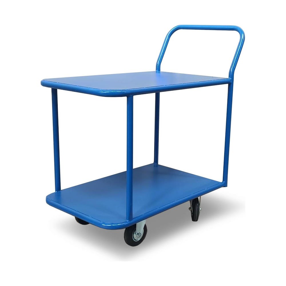 Платформенная тележка СТЕЛЛА-ТЕХНИК 2-х ярусная, 500x800 мм, металл КП-2-М-5-8-125-К используется для перевозки малогабаритных грузов. Широко используется на складах, в торговых павильонах, а также в гостиничном и ресторанном бизнесе. Оснащена двумя поворотными и двумя неповоротными колесами, изготовленными из высококачественной литой резины, что обеспечивает простоту и легкость перемещения тележки. Две платформы позволяют удобно расположить перевозимые предметы. Расстояние между ярусами - 480 мм.