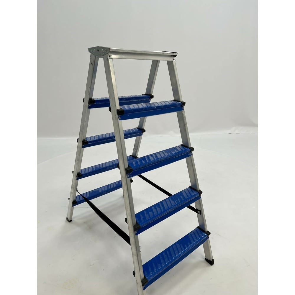 Двусторонняя алюминиевая стремянка Sarayli КОЛОР 5x5 18215 станет незаменима для ремонтных и строительных работ, в саду и подсобном хозяйстве. Предназначена для ремонтно-эксплуатационных работ. Двусторонние восхождение позволяет подниматься на лестницу с любой стороны. Специальный дизайн ступеней предотвращает скольжение.
