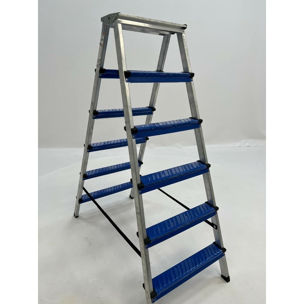 Двусторонняя алюминиевая стремянка Sarayli КОЛОР 6x6 18216 станет незаменима для ремонтных и строительных работ, в саду и подсобном хозяйстве. Предназначена для ремонтно-эксплуатационных работ. Двусторонние восхождение позволяет подниматься на лестницу с любой стороны. Специальный дизайн ступеней предотвращает скольжение.