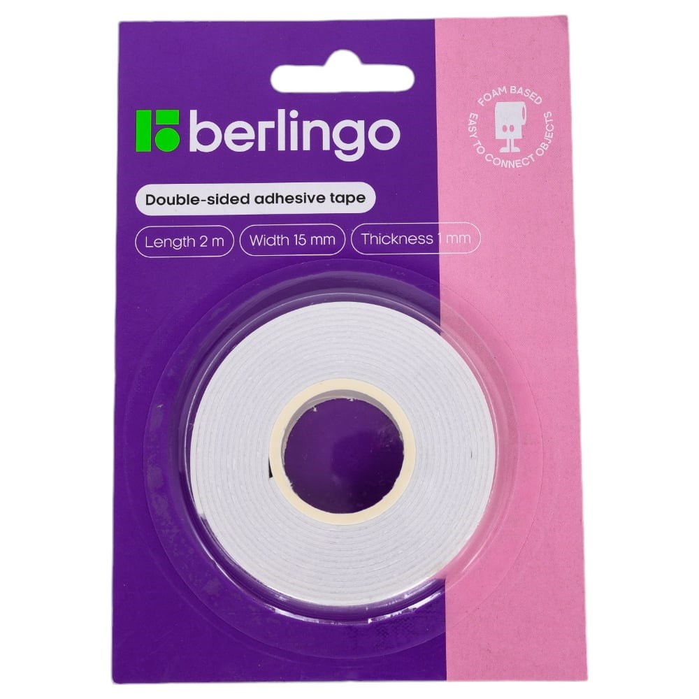 Двусторонняя клейкая лента на вспененной основе Berlingo 15 мм х 2 м, 1 мм, блистер FSn_152033 позволяет быстро и легко выполнить соединение предметов из металла, пластика, стекла, керамики, дерева и т.д. Предназначена для работы с неровными и шероховатыми поверхностями. Не оставляет следов после снятия.