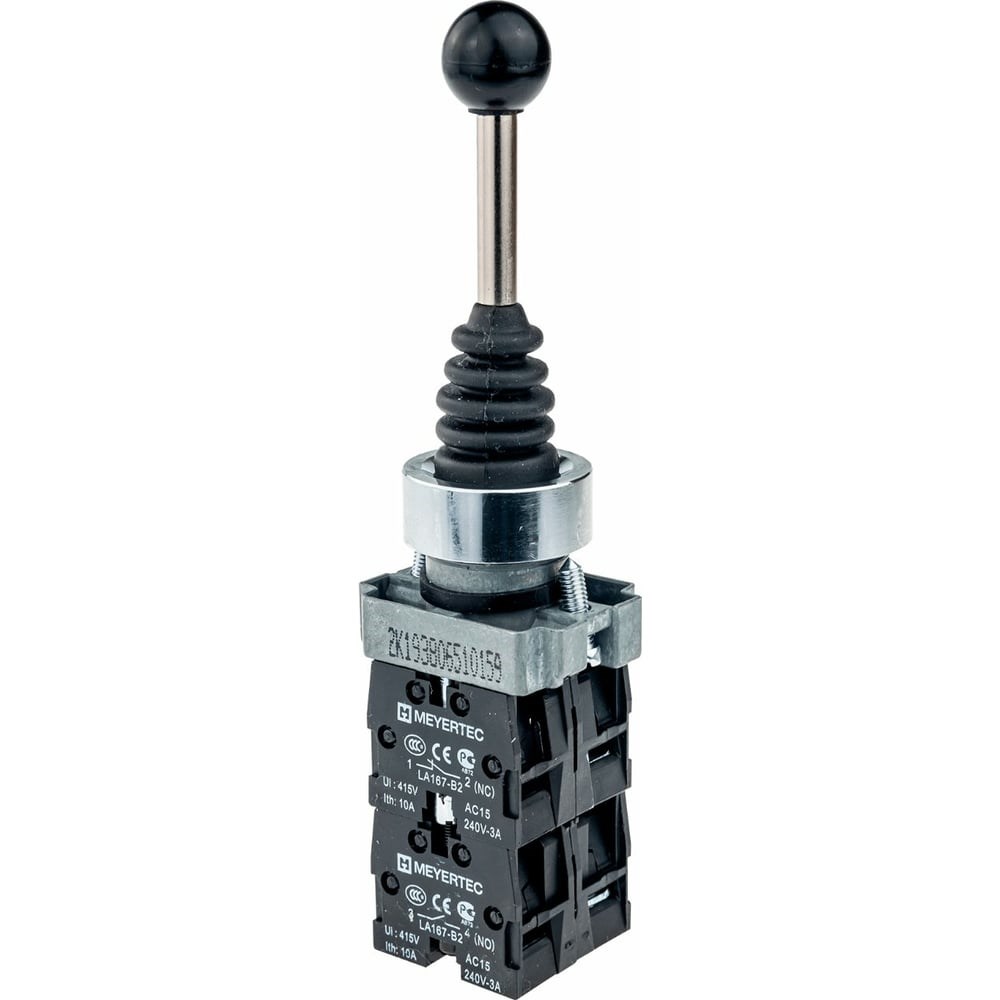 Джойстик в сборе MEYERTEC 4NO, 4 положения с фиксацией, металл MTB2-PA14 арт. 00000079424 предназначен для управления перемещением различных механизмов и установок. В отличии от кнопок и переключателей модульной группы MTB2-B контактная группа джойстиков не расширяется с помощью дополнительных контактов. ВАЖНО! Физически контактная группа джойстиков состоит из NO и NC контактов. Но контакты NC установленные в джойстиках работают по принципу NO контактов, т.е. замыкаются при перемещении рукоятки в нужное положение В серии представлены модификации на 2 и 4 направления с фиксацией или возвратом рукоятки.