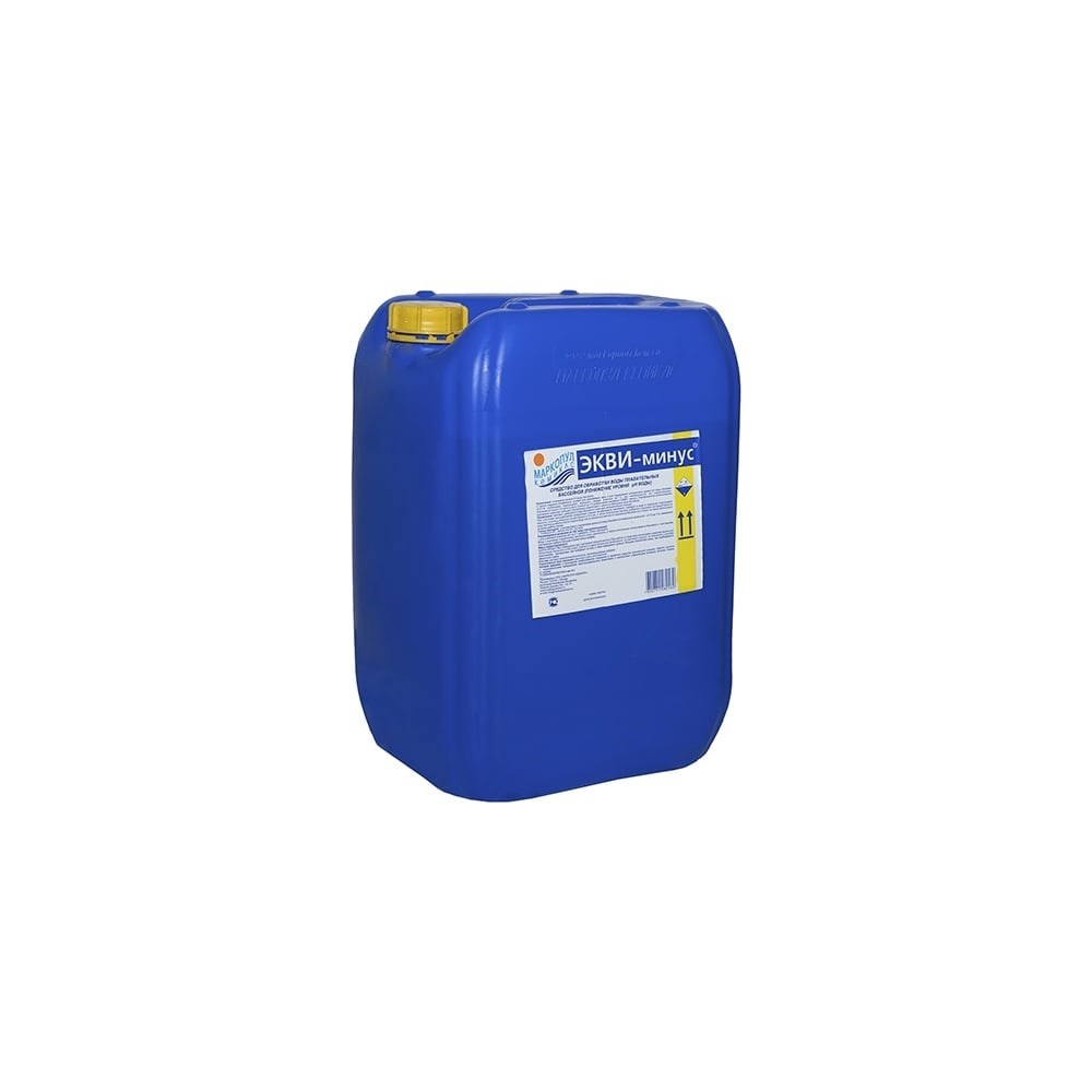ЭКВИ-минус (30л) МАРКОПУЛ КЕМИКЛС М52 применяется для понижения уровня рН в воде при механическом дозировании. Для понижения уровня рН на 0.1 следует растворить 100 мл препарата на 10 м3 воды. Жёсткая вода, а также интенсивное использование бассейна требуют больших и более частых добавок. Состав: раствор неорганической кислоты, антикоррозийные добавки; содержание основного вещества - 38%.