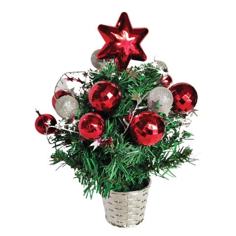 Ель искусственная новогодняя декоративная ЗОЛОТАЯ СКАЗКА 30 см, ПВХ, красные/серебристые украшения, 591322