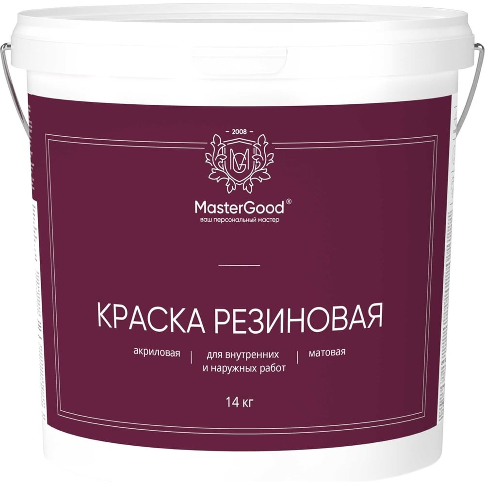 Краска резиновая эластичная MasterGood подойдет для окраски фасадов зданий, фундаментов, заборов, бордюров, крыш, водосточных систем, внутренних поверхностей систем, стен, потолков и декоративных элементов в сухих помещениях, и помещениях с повышенной влажностью. Перед использованием краску необходимо тщательно перемешать. СОСТАВ: вода, наполнитель, композиция латексов, пигменты, антисептик.