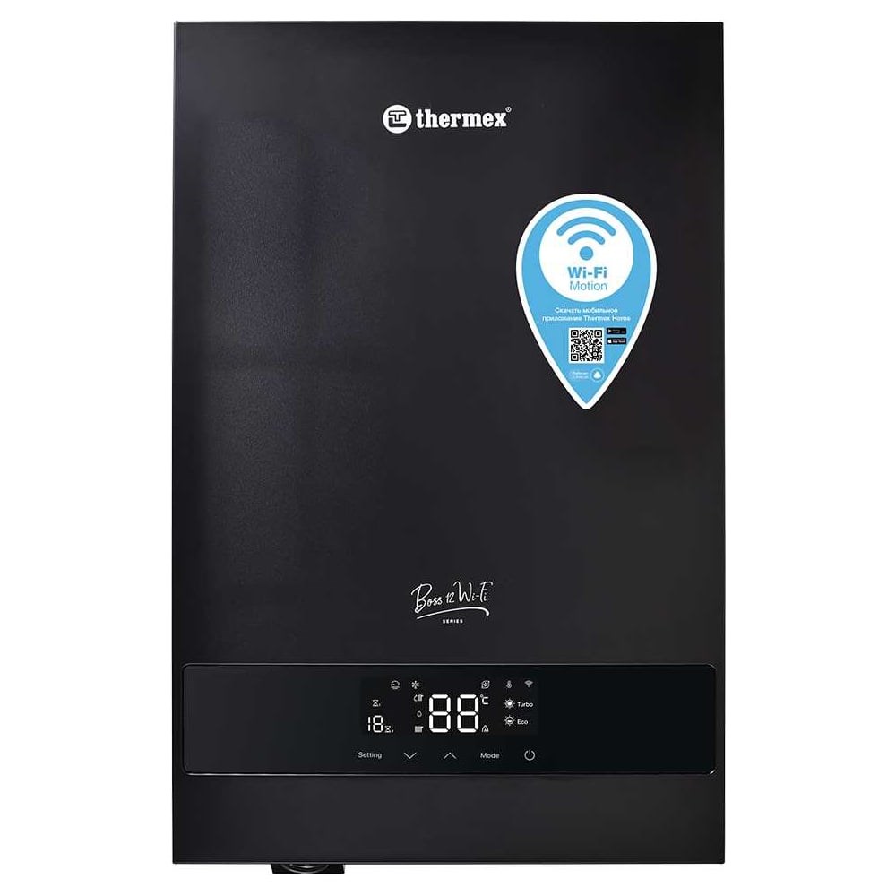 Отопительный котел Thermex Boss 12 Wi-Fi обладает уникальными качествами, которые отличают его от других серий. Шесть вариантов мощности позволяют выбрать оборудование полностью под любые потребности пользователя. Улучшенный теплообменник, системы защиты, режимы программирования и удобное управление – делают котел не только надежным, но и приятным в использовании. Теплообменник сухого нагрева из алюминиево-магниевого сплава Широкий выбор мощности: 2, 4, 6, 8, 10 и 12 кВт Расширительный бак объемом 6 литров Работа с системами отопления Дистанционное управление через Wi-Fi Система самодиагностики Регулируемая мощность: 2, 4, 6, 8, 10 и 12 кВт Напряжение сети 220/380 В Площадь отопления до 120 м2 Объем расширительного бака 6 л Режим отопления – радиаторы или теплый пол Электронное управление Дистанционное управление через приложение Thermex Home Максимальное давление воды - 0,3 МПа 1 класс защиты от поражения электрическим током Теплообменник из алюминиево-магниевого сплава Теплообменник сухого нагрева Система самодиагностики Защита от замерзания 2 года полной гарантии 4 года гарантии на теплообменник