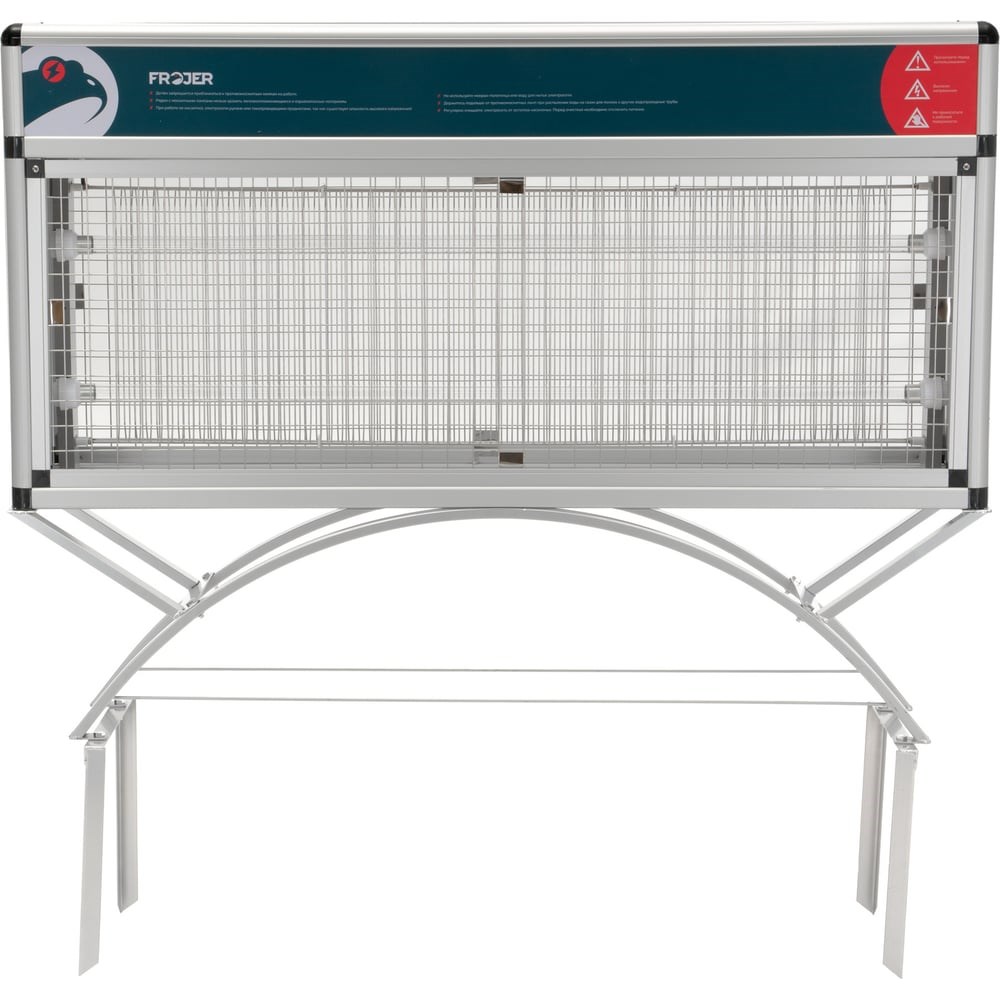 Ловушка для насекомых электрическая Frojer PRO XC80-LED - это эффективное и безопасное устройство номинальной мощностью 98 Вт, которое обеспечивает защиту от комаров, мошек, мух, ос, моли и других летающих насекомых на площади до 290-330 кв. м. (здесь имеется в виду площадь охвата и привлечения насекомых к прибору). Предназначена для использования на строительных площадках, на пастбищах, в кемпингах, в вахтовых поселках и на других открытых площадках с большим количеством летающих вредителей. Ее эффективность достигает максимума в темное время суток или сумерки, когда посторонний свет не заглушает фонарь и насекомые наиболее активны. Однако, противомоскитный эффект при свете слабее, чем в темноте, так как лампа становится менее заметной для насекомых и не выглядит для них очевидной целью. Антимоскитная лампа Frojer PRO XC80-LED привлекает насекомых ультрафиолетовым свечением в привлекательном для них диапазоне 365 и 395 нм, формируемым лентой мощных светодиодов с линзами и медным основанием для качественного теплоотведения. Мощная электронная начинка позволяет прибору формировать разряды более 10 раз в секунду. Подлетающие на свет к сетке на расстояние ближе 0,3 мм вредители поражаются тихим электрическим разрядом, который возникает между прутьями, расположенными вокруг источника света. Благодаря этому, электроловушка работает бесшумно и не издает неприятных звуков, что делает его более комфортным для пользователя.