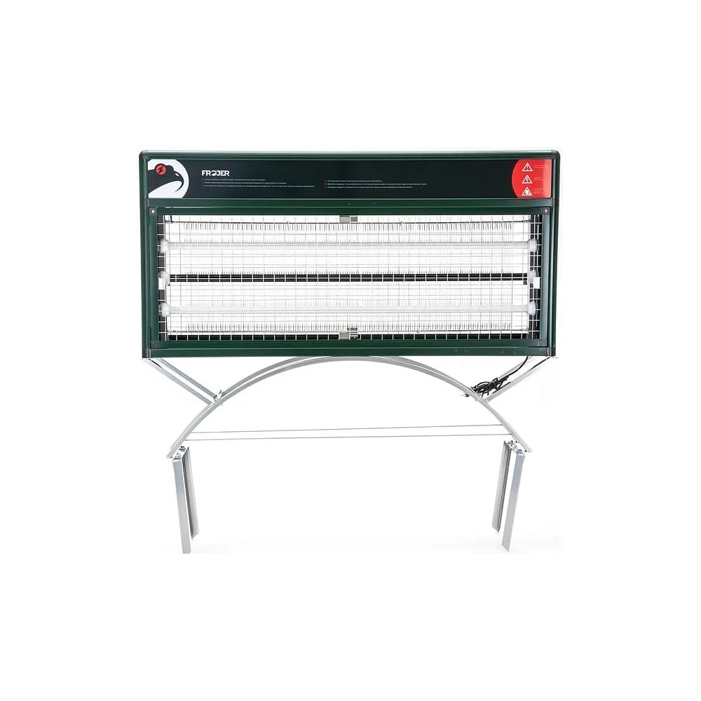 Лампа инсектицидная Frojer XC80-FSL профессиональная - это высокопроизводительное устройство, предназначенное для уничтожения летающих насекомых в помещениях и на улице, не имеющее аналогов на российском рынке. Ловушка обеспечивает эффективное уничтожение комаров, мошек, мух, ос, моли и других летающих насекомых. Данная модель рекомендована для использования в следующих сферах: Животноводческие хозяйства – для борьбы с мухами внутри и снаружи комплексов; Дома отдыха, рестораны, строительные и вахтовые поселки – для сокращения популяции комаров, мошки, мух, ос на прилегающей территории; Пищевые производства – для уменьшения количества мух и ос в местах хранения отходов; Садовые и дачные поселки и участки – для борьбы с крылатыми вредителями, уничтожающими плоды и растения. Извлеченные из ловушки насекомые могут использоваться в качестве подкормки для птиц и рыб. Принцип действия ловушки для насекомых FROJER PRO XC80-FSL заключается в приманивании насекомых УФ свечением и дальнейшем их уничтожении мощным электрическим разрядом, формирующимся между прутьями решетки. Пораженные током насекомые падают в расположенный внизу приемный лоток.