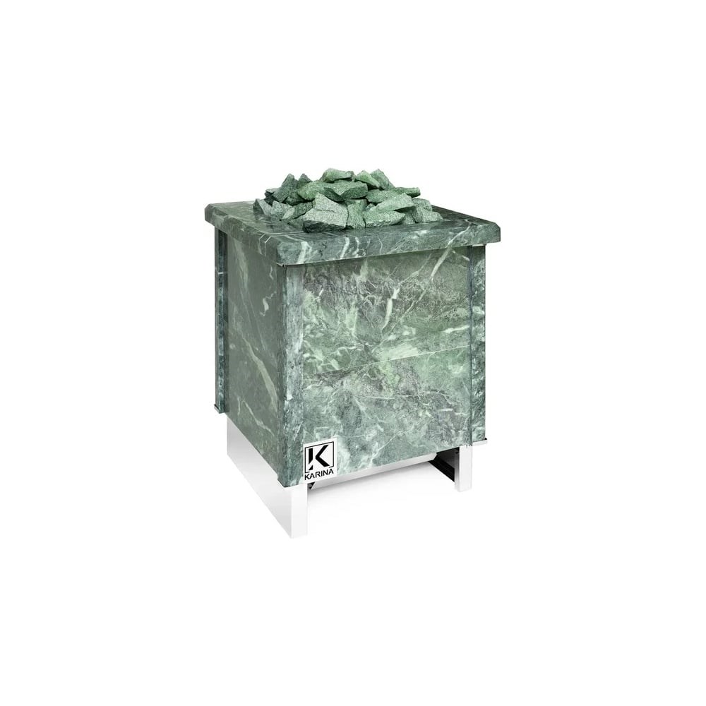 Электрическая печь KARINA Quadro 18 Змеевик представляет собой электрокаменку, полностью облицованную натуральным камнем, и способной прогреть коммерческие бани и сауны объемом до 30 м3.Электрическая каменка со всех сторон облицована натуральным змеевиком. Печь с подобным дизайном стильно смотрится в парильном помещении. Змеевик уже долгие годы используется для внутренней отделки бань. Его называют «аптекарским камнем» за его целебные качества. Минерал оказывает обеззараживающий эффект, положительно влияет на кости, оказывает успокаивающее воздействие и укрепляет иммунитет.Отсек для камней рассчитан на загрузку до 60 кг.Печь работает от сети с напряжением 380 В.Нагревательным элементом является ТЭН из высококачественной нержавеющей стали. Диаметр нагревательного элемента составляет 13 мм. Подобные нагреватели не боятся попадания воды. Благодаря этому можно установить модель не только в финские сауны с сухим паром, но и в русские традиционные бани с повышенной влажностью воздуха.ТЭН из специальной нержавеющей стали имеет повышенную электробезопасность и оптимальную тепловую инерцию.Электропечь устанавливается напольным способом.В комплектации печи отсутствует выносной пульт управления, поэтому его необходимо будет приобрести дополнительно.