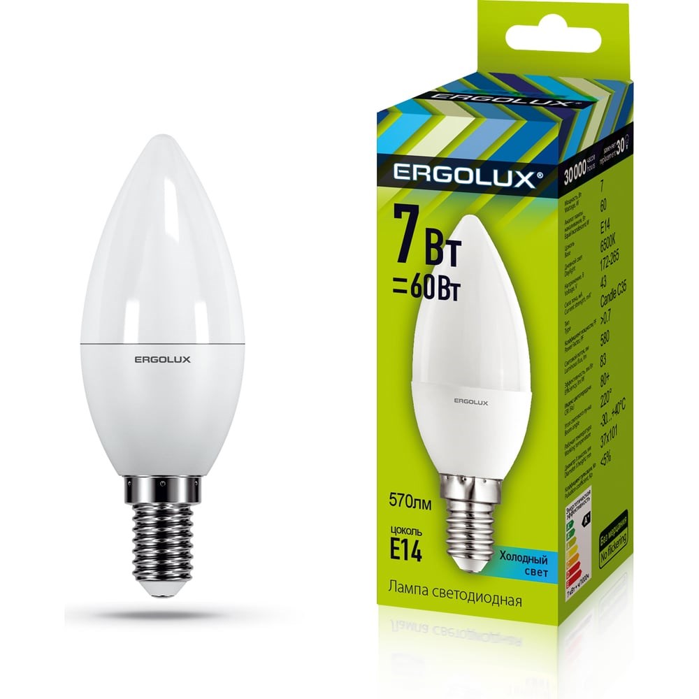 Электрическая светодиодная лампа Ergolux LED-C35-7W-E14-6K Свеча
