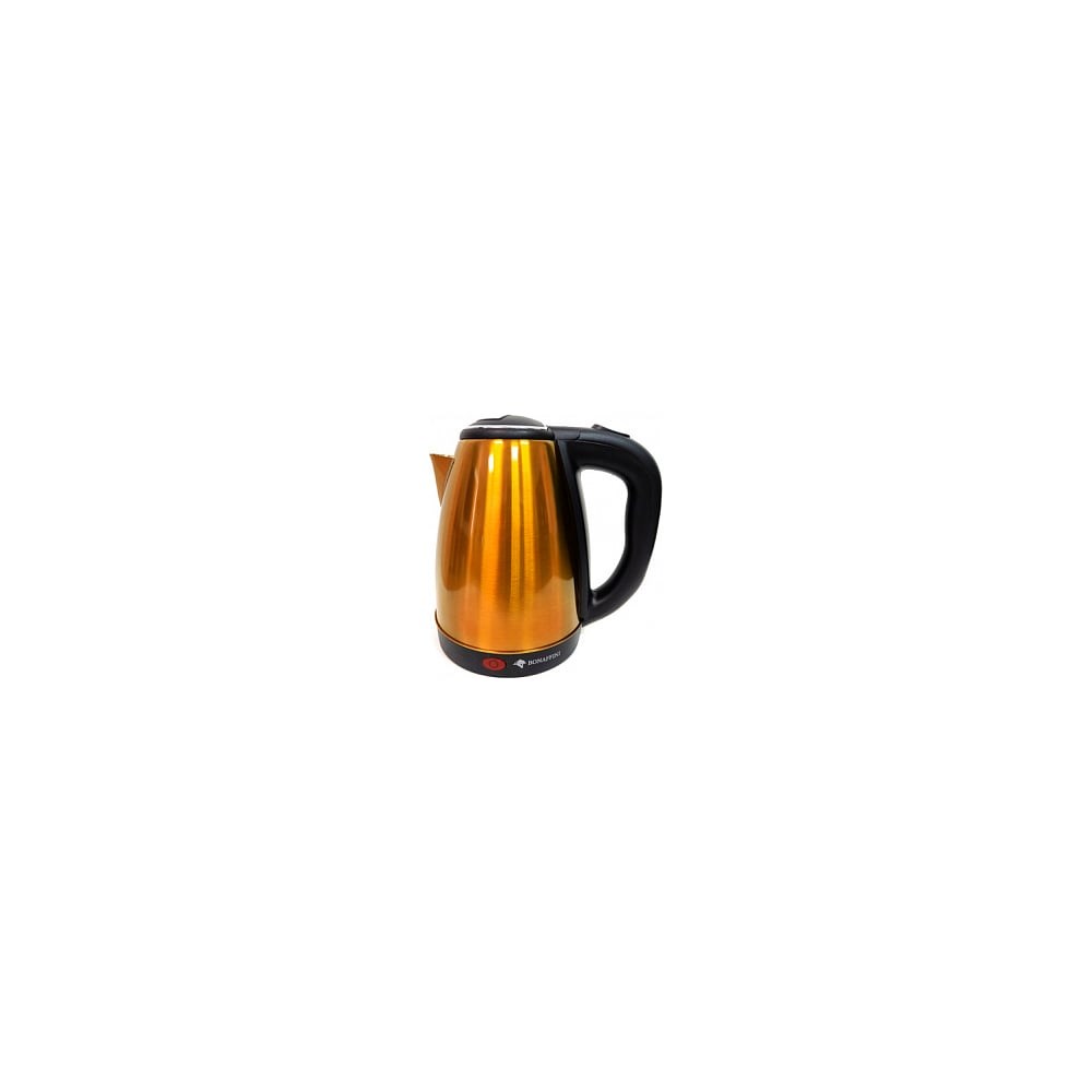 Электрический чайник BONAFFINI ELK-0004 1.8 л, 1500 Вт, дисковый, металл золотой Чай1532 предназначен для использования в офисе или дома. Имеет объем 1.8 литра, поэтому отличается вместительностью, за счет чего подходит для нескольких человек. Благодаря мощности 1500 Вт быстро нагревает воду, что экономит время. Чайник оборудован подставкой, за счет чего вращается на 360 градусов, что позволяет брать его с любой стороны.